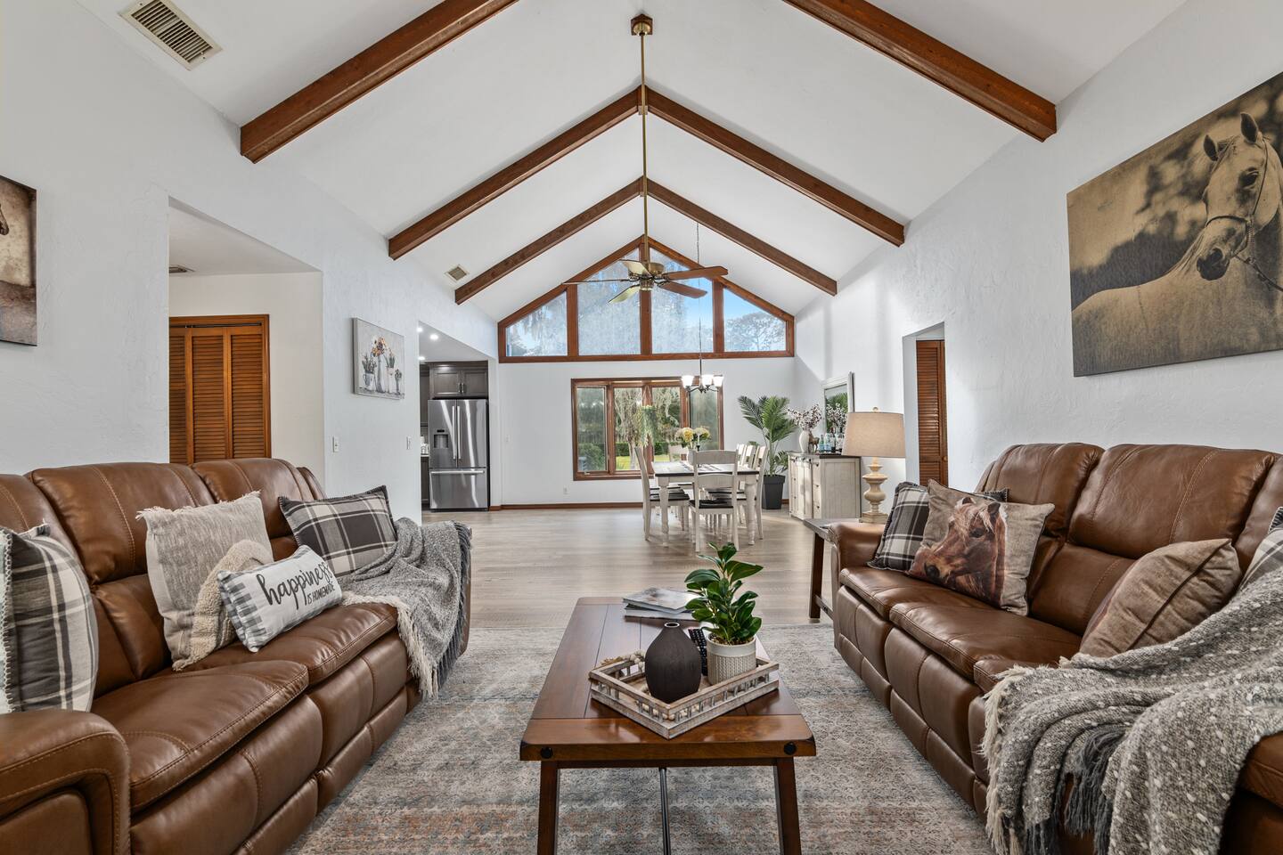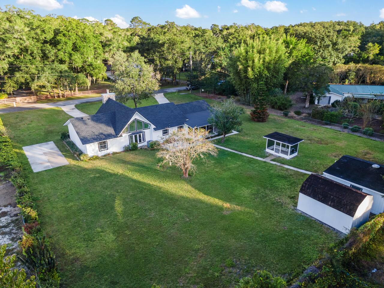 3/4 Acre Ranch on a quiet cul de sac for the ultimate private retreat after all the events you plan in Ocala. A well appointed home with large living area and brand new kitchen with induction cooktop await for the gourmet chef. Room to park your trailer if visiting the World Eqestrian Center on outside pad or 2 car in the garage. Relax in the evening in the spacious lanai. 1 Mile from the business district with restaurants and shopping galore.